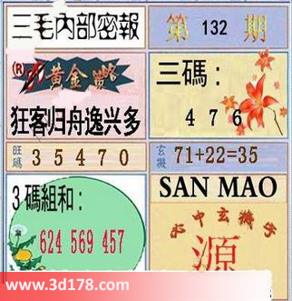 3d之家三毛图库第16132期三毛内部密报图详解:黄金策略:狂客归舟逸兴多