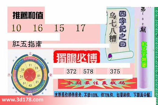 3d第2016132期红五玄机图详细内容:推荐和值:10 16 15 17