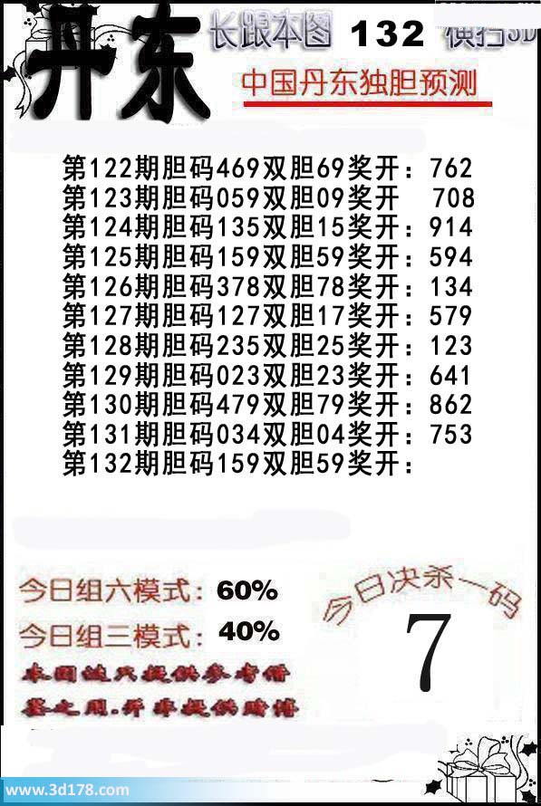 3d丹东胆码图第2016132期: