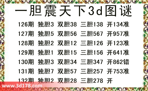 一胆震天下三胆图库由3d之家3d图库频道原创,仅供彩民参考,温馨提供。