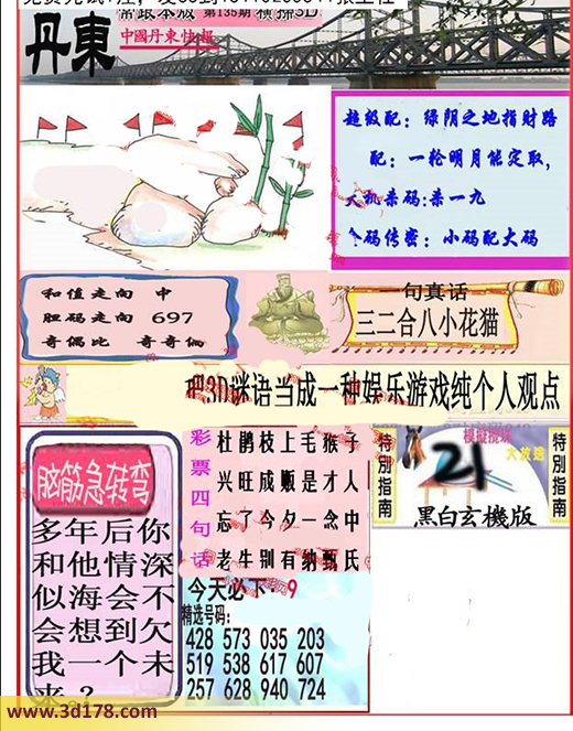 3d之家第2016135期丹东快报图:3d第2016135期丹东快报图详解:超级配:绿阴之地指财路配:一轮明月能定取天机杀码:杀一九和值走向:中胆码走向:697奇偶比:奇奇偶金码传密:小码配大码精选号码:428 573 035 203 519 538 617 607 257 628 940 724脑筋急转弯:多年后你和他情深似海会不会想到欠我一个未来?该丹东图库由3d之家3d图库频道原创,仅供彩民参考,温馨提供。