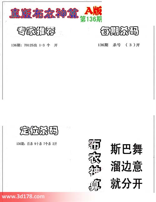 3d布衣神算第136期定位杀码: