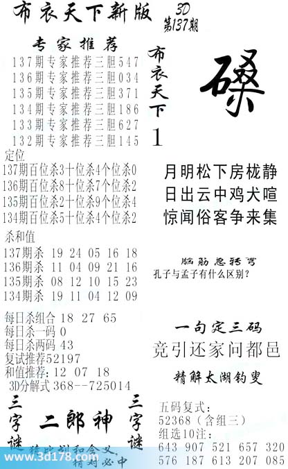 福彩3d第2016137期福彩3d布衣天下新版: