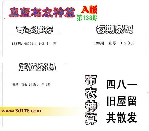 3d之家布衣图库之布衣神算图第2016138期详解: