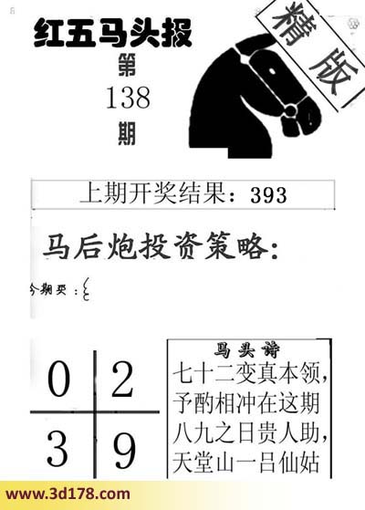 3d第2016138期红五马头报本期马头诗详解: