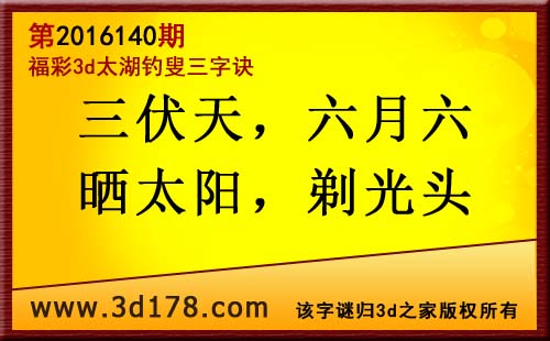 福彩3d第2016140期太湖图库解字谜详解:
