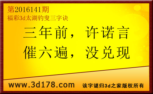 福彩3d第2016141期太湖图库解字谜详解: