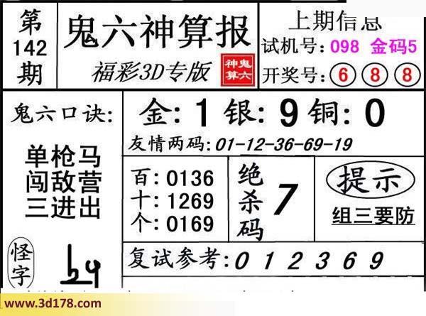 3d第16142期鬼六神算报为您推荐鬼六口诀: