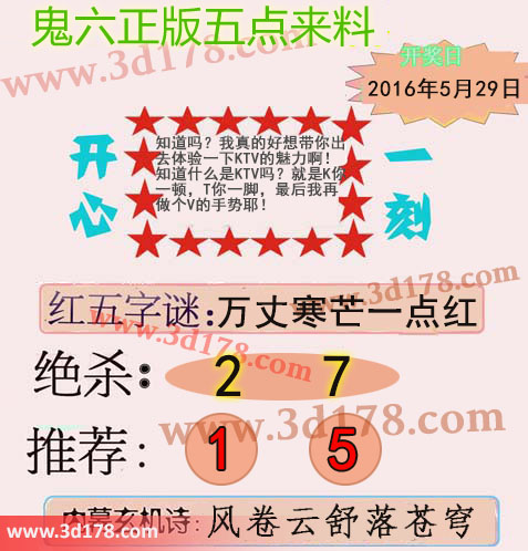 3d鬼六图库第16143期鬼六正版五点来料图:
