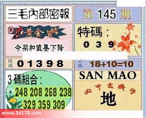 3d之家三毛图库第16145期三毛内部密报图详解: