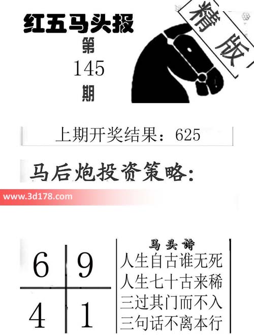 3d第2016145期红五马头报本期马头诗详解: