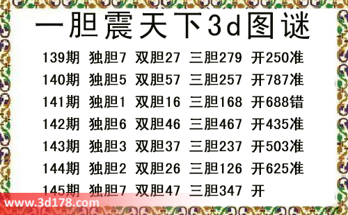 本期一胆震天下3d图谜