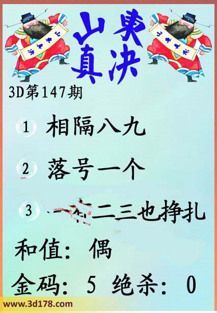 福彩3d第147期山东真诀图如下所示: