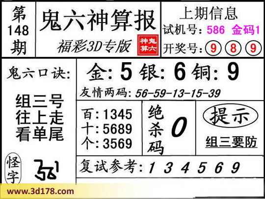 3d第16148期鬼六神算报为您推荐鬼六口诀: