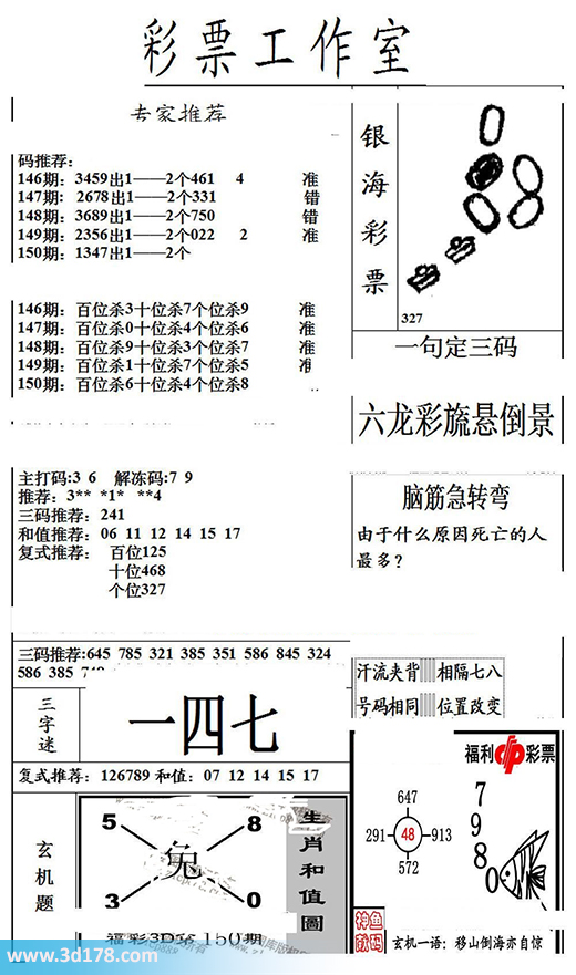 150期:百位杀6 十位杀4 个位杀8