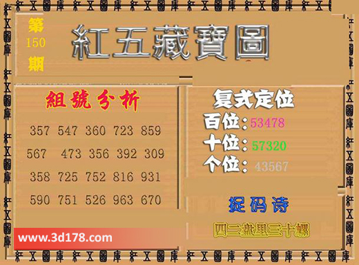 3d之家3d红五藏宝图第2016150期为您推荐复式定位、捉码诗以及组号分析: