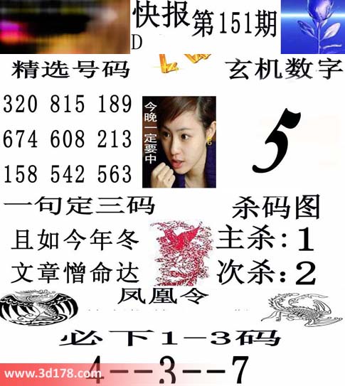 福彩3d凤凰快报图第16151期精选号码推荐: