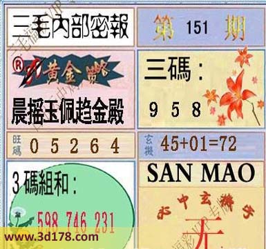 福彩3d第151期三毛绝密信封资料图详解:黄金策略:晨摇玉佩趋金殿