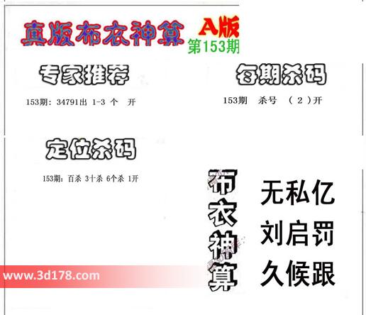 3d之家布衣图库之布衣神算图第2016153期详解: