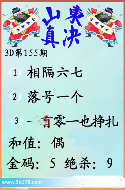 福彩3d第155期山东真诀图如下所示: