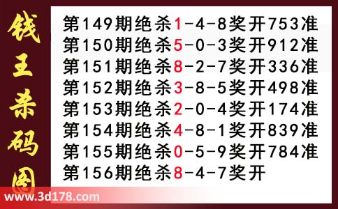 近期3d钱王杀码具体详情: