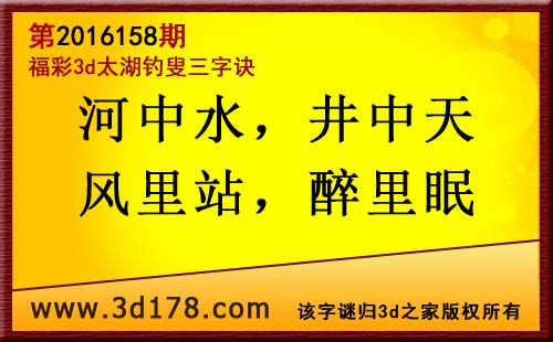 福彩3d第2016158期太湖图库解字谜详解: