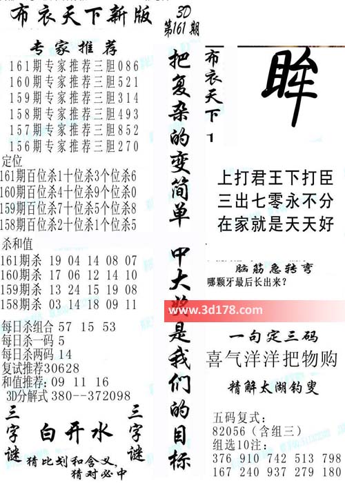 福彩3d第2016161期福彩3d布衣天下新版: