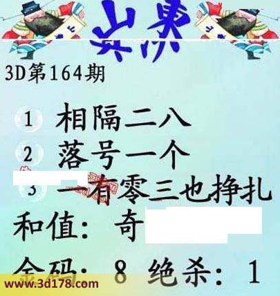 3d第2016164期山东真诀图金码推荐: