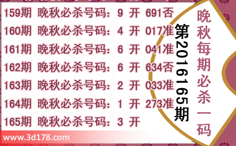 165期 晚秋必杀号码:3 开