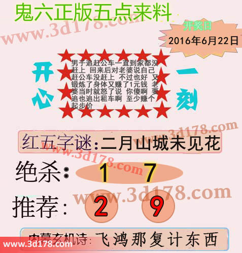 3d鬼六图库第16167期鬼六正版五点来料图: