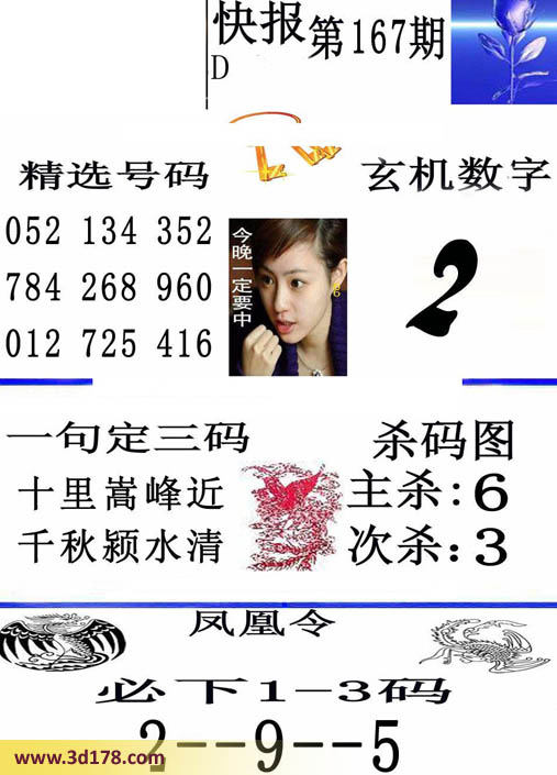 福彩3d凤凰快报图第16167期精选号码推荐:
