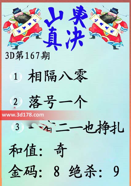 福彩3d第16167期山东真诀图如下所示: