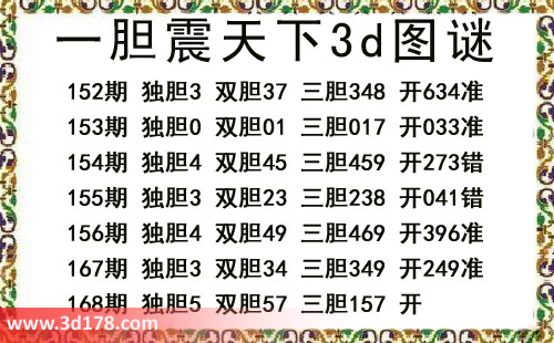 本期一胆震天下3d图谜