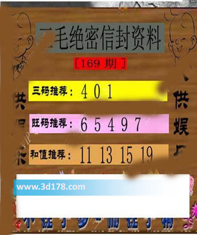 福彩3d第169期三毛绝密信封资料图详解: