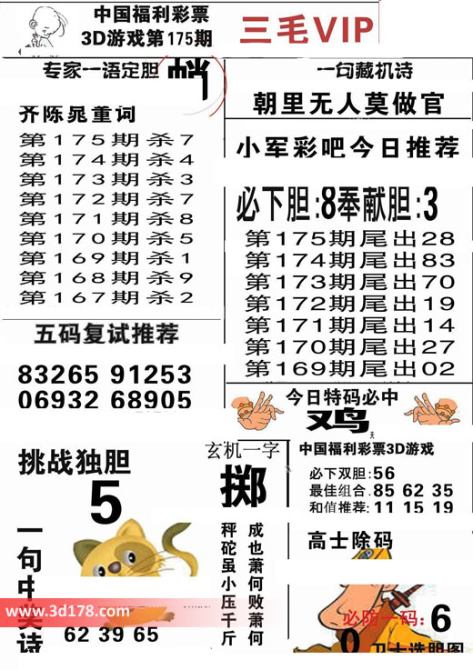第2016175期3d三毛图库为您解读本期专家一语定胆: