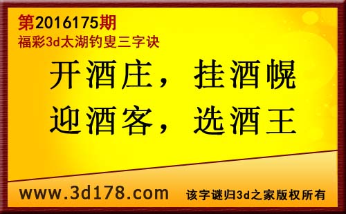 福彩3d第2016175期太湖图库解字谜详解: