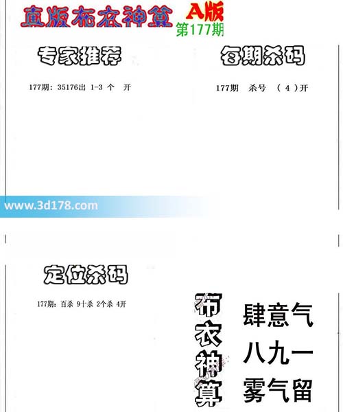 3d之家布衣图库之布衣神算图第2016177期详解: