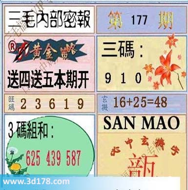 3d之家三毛图库第16177期三毛内部密报图详解: