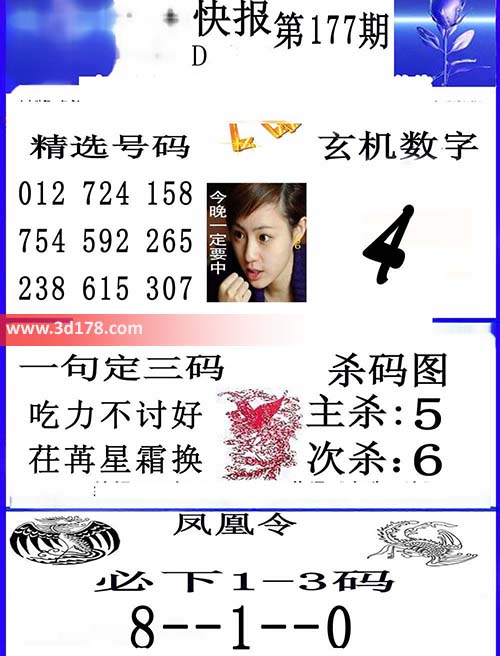 福彩3d凤凰快报图第16177期精选号码推荐: