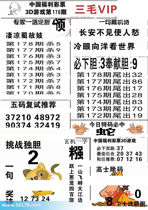 第2016178期3d三毛图库为您解读本期专家一语定胆:3d第2016178期三毛图库VIP详解:第2016178期杀一码推荐:5必下双胆:37挑战独胆:2五码复式推荐:37210 48972 90374 32419今日特码必中:蛇最佳组合:20 37 43和值推荐:07 12 16玄机一字:糨该三毛玄机解码图由3d之家3d图库频道原创,仅供彩民参考,温馨提供。