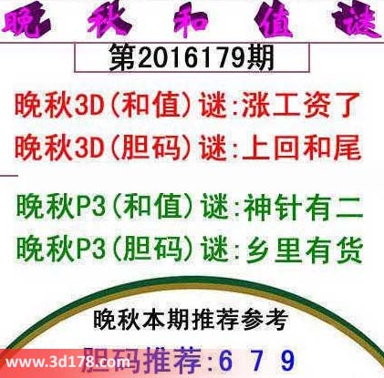 晚秋3D(和值)谜:涨工资了