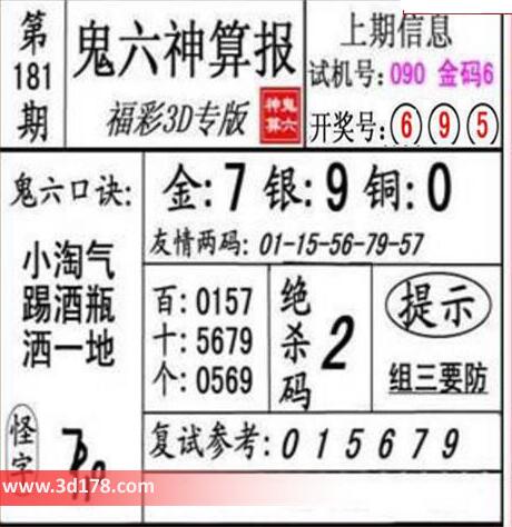 3d第16181期鬼六神算报为您推荐鬼六口诀:
