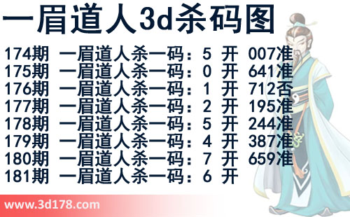 该一眉道人3d杀码图由3d之家3d图库频道原创,仅供彩民参考,温馨提供。