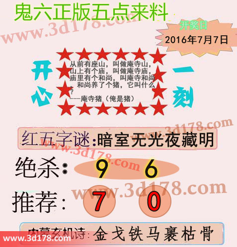 3d鬼六图库第16182期鬼六正版五点来料图: