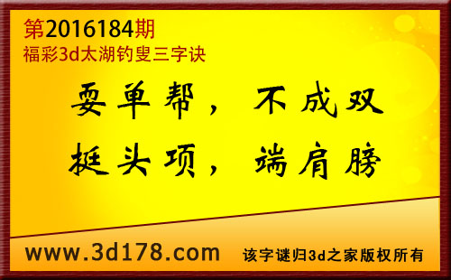 福彩3d第2016184期太湖图库解字谜详解: