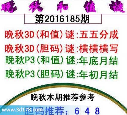 晚秋p3(和值)谜:年底月结