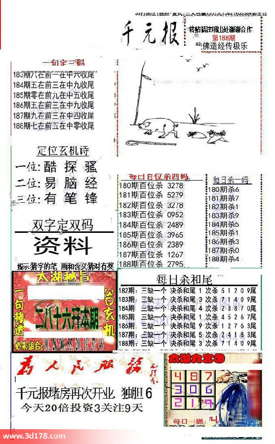 福彩3d第2016188期布衣千元报图详情分析如下: