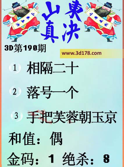 福彩3d第16190期山东真诀图如下所示: