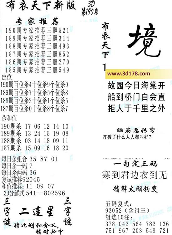 福彩3d第2016190期福彩3d布衣天下新版: