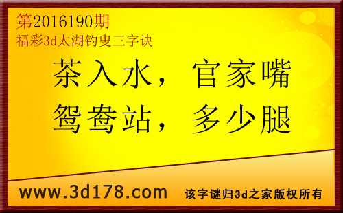 茶入水:用水泡茶,水在五行中第三位,解:3;
